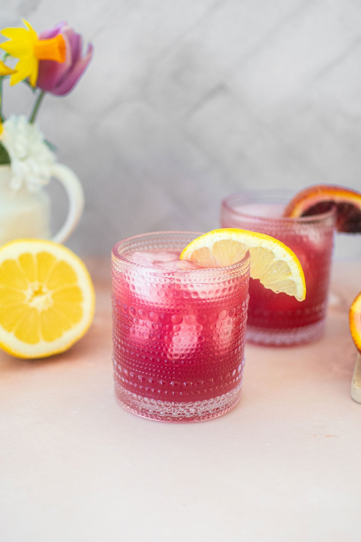 Blood oranges have a unique flavor that is more robust than traditional oranges. And, because of the anthocyanins found in blood oranges—a pigment not present in regular lemons—this Blood Orange Lemonade is naturally pink! I think they have more of a berry flavor compared to traditional oranges lighter and sweeter taste. While this seasonal orange still has a citrus vibe, it also has floral undertones making it a great pairing to tart lemons! Blood oranges are seasonal and best when enjoyed in season!