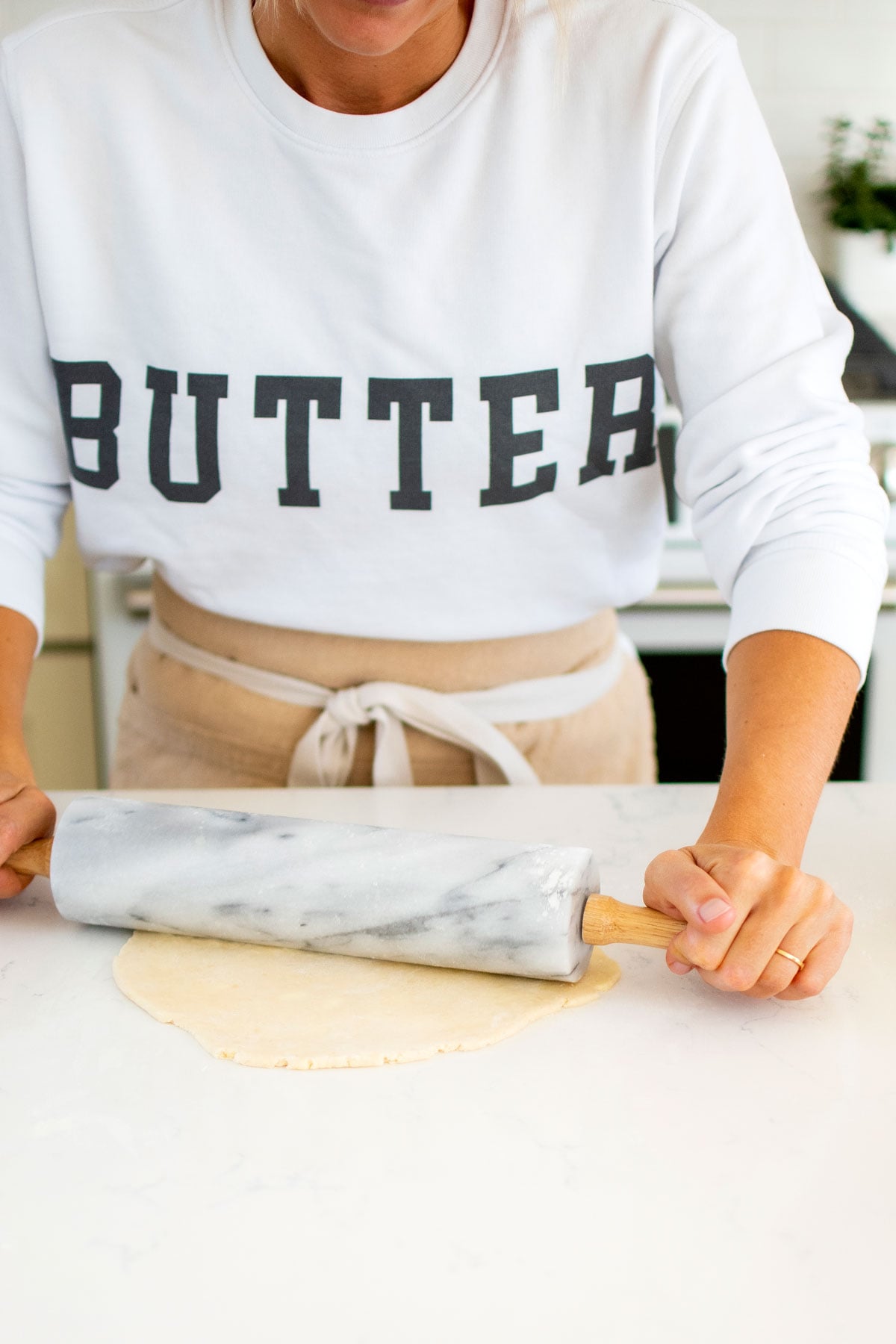 Looking for my sweatshirt? Shop my Butter College Sweatshirt. Want the recipe for this pie? Check out my Caramel Apple Pie.
