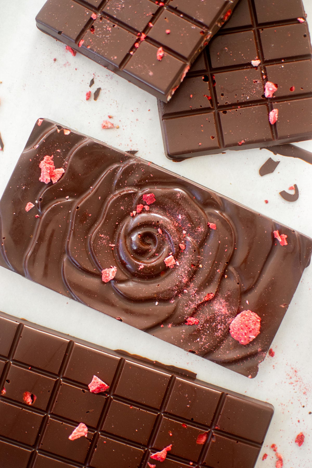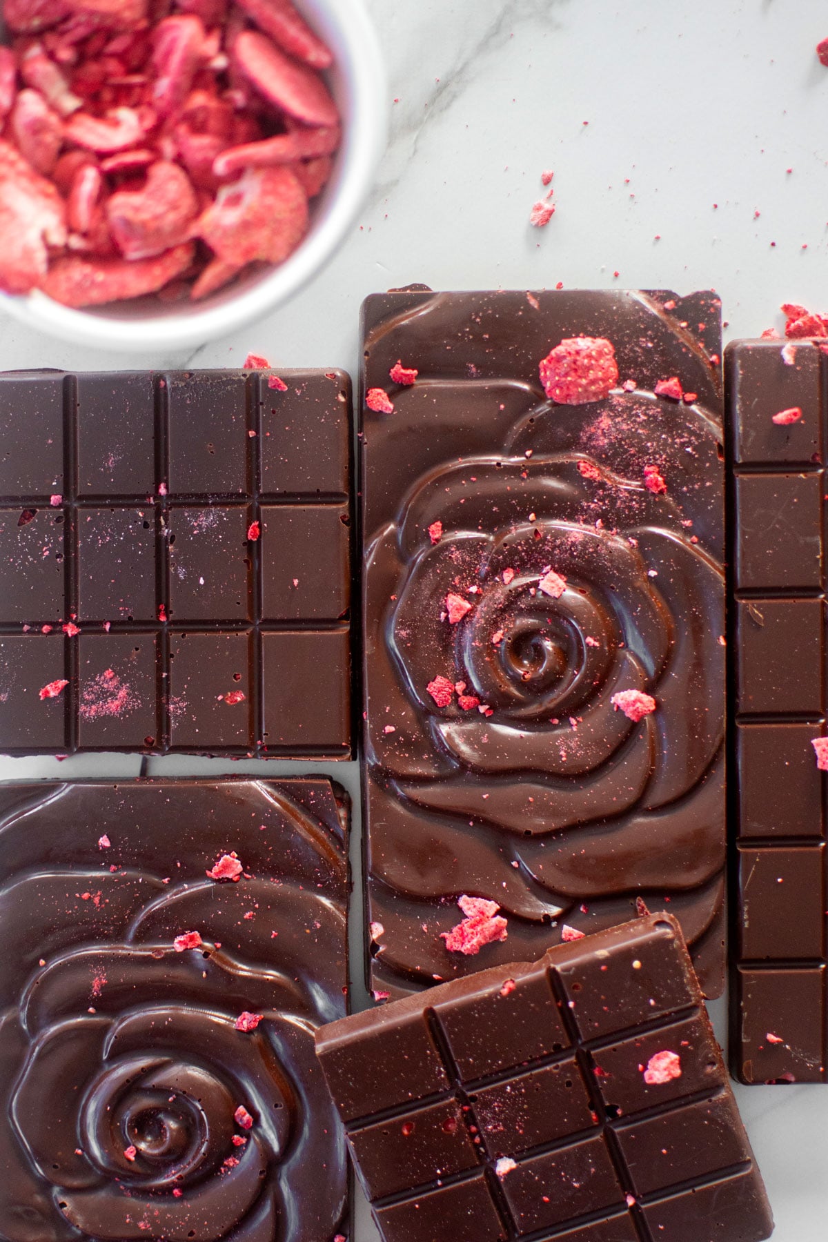 - 2 Ingredients: These homemade chocolate bars have just 2 organic ingredients. Organic dark chocolate and freeze dried strawberries are all you need.