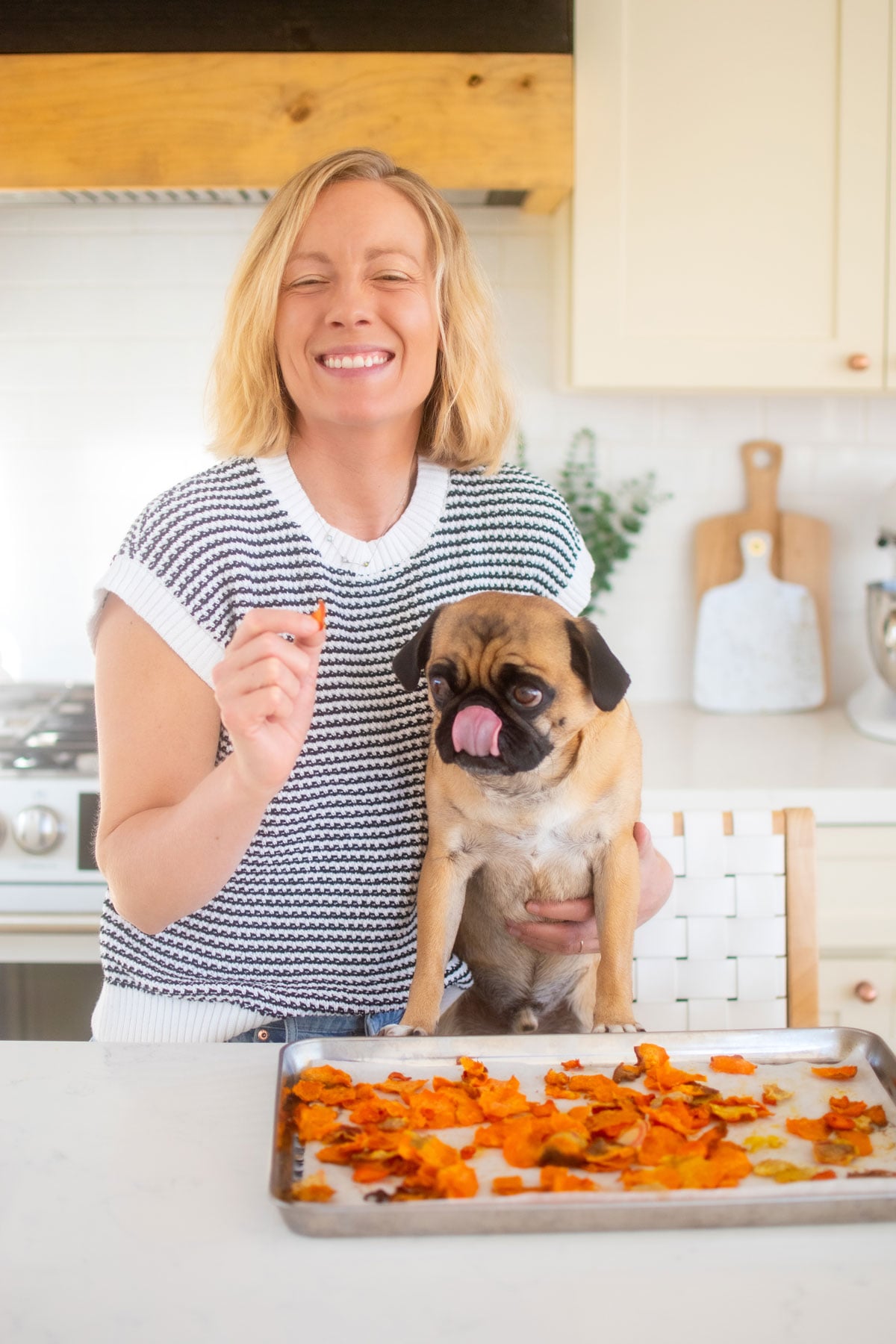 - Sweet Potato Chips: These are like sweet potato chips for dogs! If your dog loves sweet potatoes as much as John John does, check out our Dog Friendly Sweet Potato Fries too!